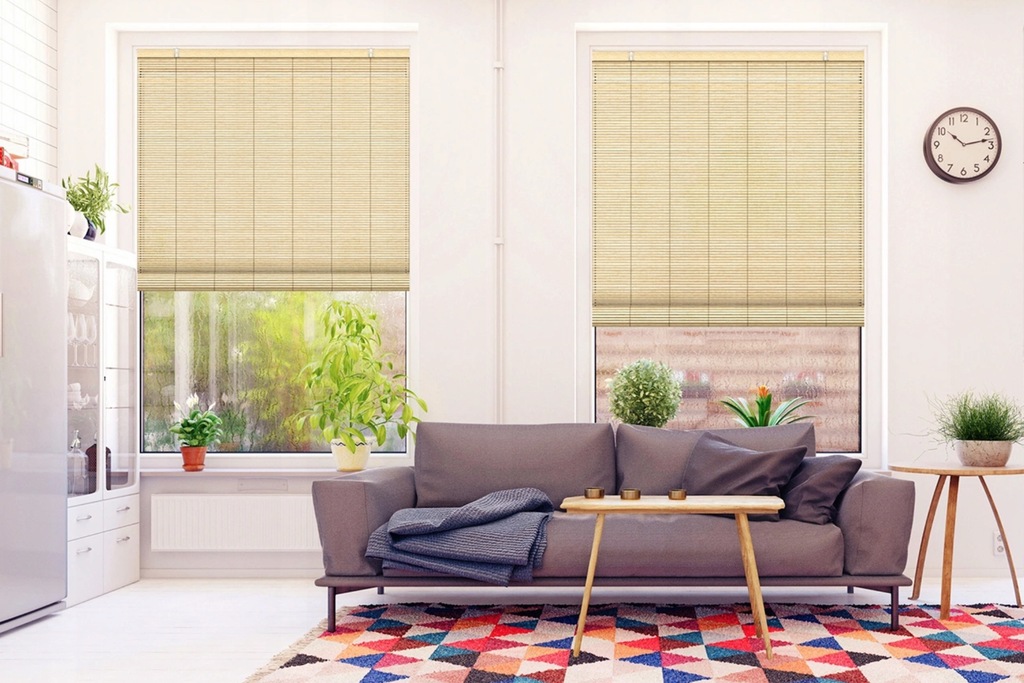 Bamboo blinds bring a natural, eco-friendly look with soft light control and privacy, adding warmth, texture, and relaxed style to any room interior.