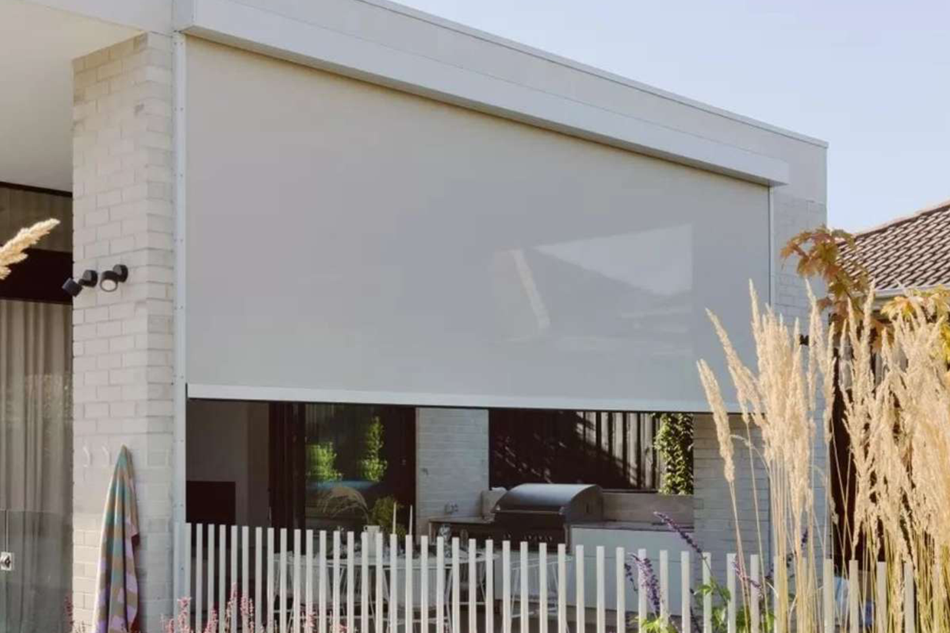 Outdoor blinds provide shade, privacy, and weather resistance, helping create a comfortable outdoor space while maintaining a clean, modern appearance.